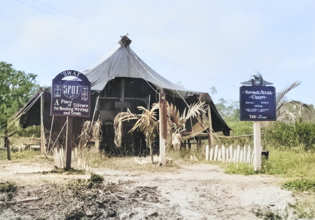 The ‘SWAT Spot’ and Roemah Allah Chapel, maintained by 26 Repair and Salvage Unit (26 RSU) and Padre Arthur Wilkins, 31 Squadron, RAAF on Tarakan Island in 1945.